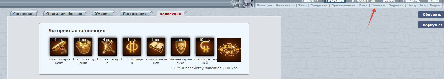 Бонус за сбор коллекции: +15% к параметру максимальный урон. Можно получить рандомно из Колеса Демиургов.
